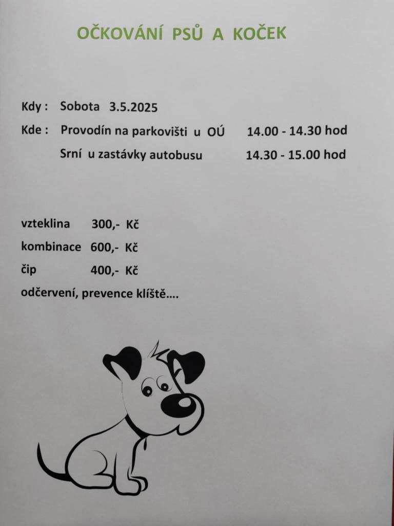 Očkování psů a koček 3.5.2025 - sobota